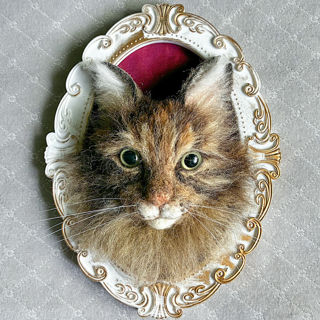羊毛フェルトを作り始める以前は、広告のイラストレーションを手がけており、これまで勉強のために多くの人物画を描いてきましたが、フレームにイーゼル、そして胸像で表現する私の作風は、絵画で描いてきた人物画がインスピレーションとなっています。